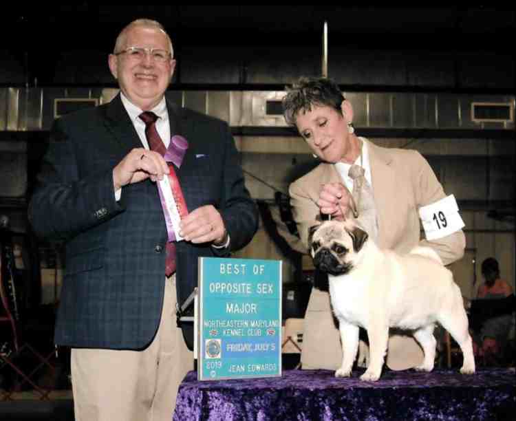 Lexi is one of the few conformation champion pugs to have earned a CDX Obedience title.